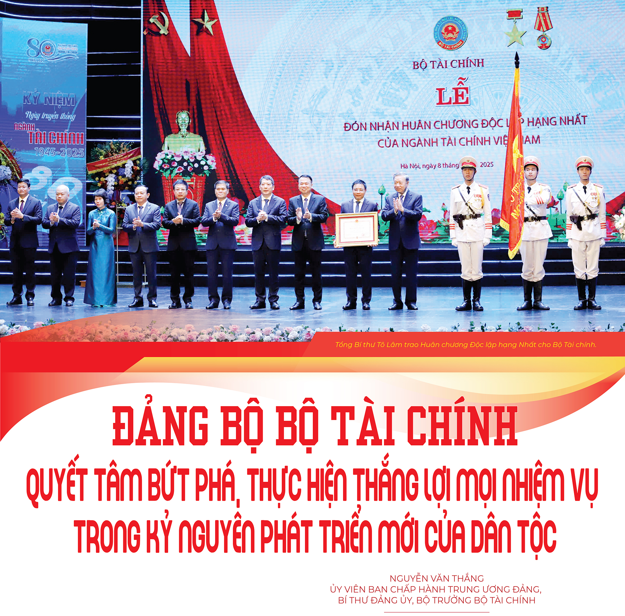 Với sự chỉ đạo quyết liệt của Đảng ủy Bộ Tài chính cùng sự chuẩn bị tích cực của các cấp ủy đảng trực thuộc, Đại hội đại biểu Đảng bộ Bộ Tài chính lần thứ I, nhiệm kỳ 2025-2030 diễn ra vào những ngày mùa Thu tháng 8/2025. Trong nhiệm kỳ mới, Đảng ủy, Lãnh đạo Bộ Tài chính tiếp tục tập trung lãnh đạo, chỉ đạo cấp ủy, tổ chức đảng và đội ngũ cán bộ, đảng viên không ngừng nâng cao chất lượng, hiệu quả công tác tham mưu; thể chế hóa, cụ thể hóa và tổ chức thực hiện thắng lợi Nghị quyết Đại hội XIV của Đảng, Nghị quyết Đại hội lần thứ I của Đảng bộ Chính phủ, của Đảng bộ Bộ Tài chính; tích cực lao động sáng tạo, dám nghĩ, dám làm, dám chịu trách nhiệm, dám đột phá vì lợi ích chung; tiếp tục cụ thể hóa phương hướng, nhiệm vụ, giải pháp phát triển kinh tế - xã hội đã được xác định trong Chiến lược phát triển kinh tế - xã hội 10 năm (2021-2030)...