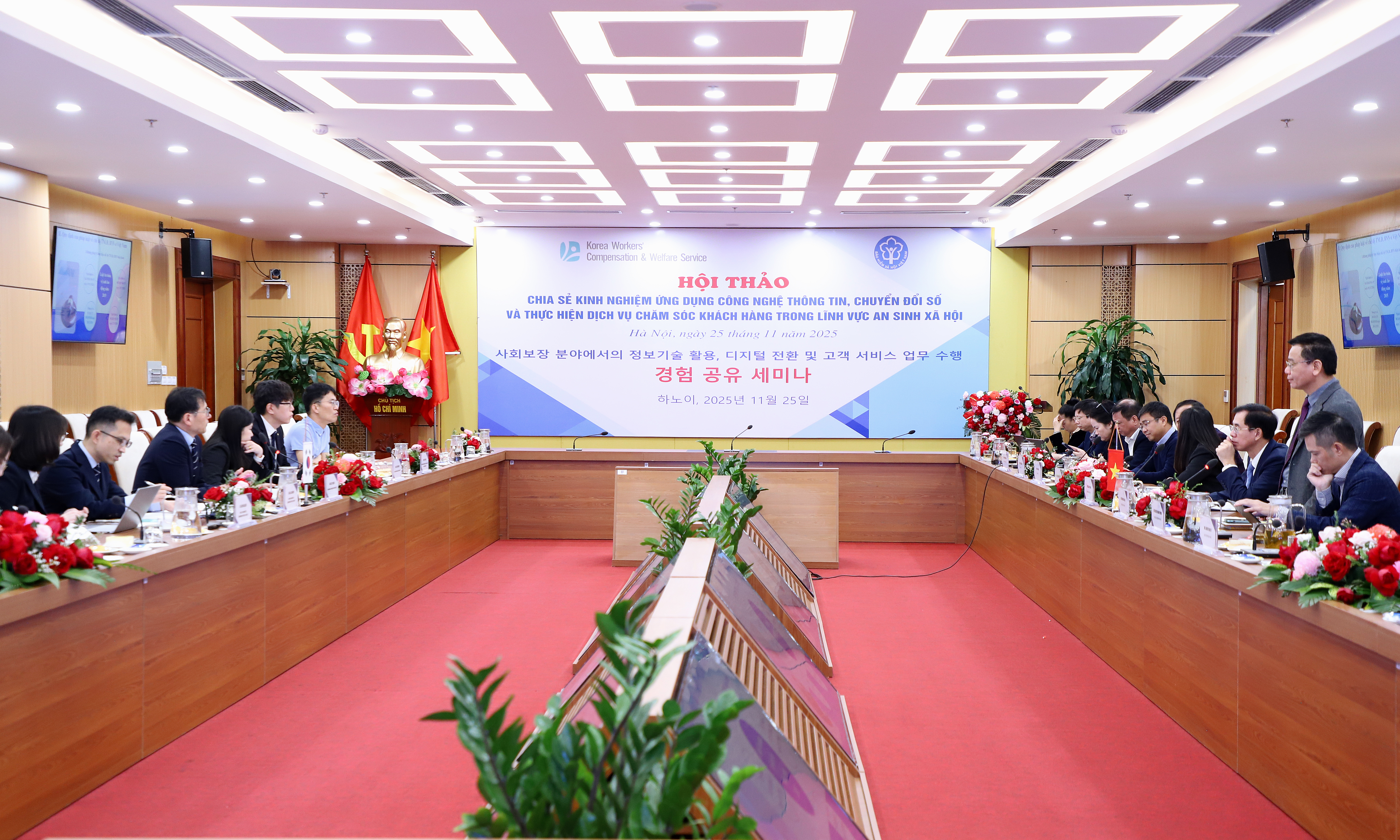 Ngày 25/11, tại TP. Hà Nội, Bảo hiểm xã hội (BHXH) Việt Nam phối hợp với Cơ quan Phúc lợi và bồi thường cho người lao động Hàn Quốc (COMWEL) tổ chức Hội thảo “Chia sẻ kinh nghiệm ứng dụng công nghệ thông tin, chuyển đổi số và dịch vụ chăm sóc khách hàng trong an sinh xã hội”.