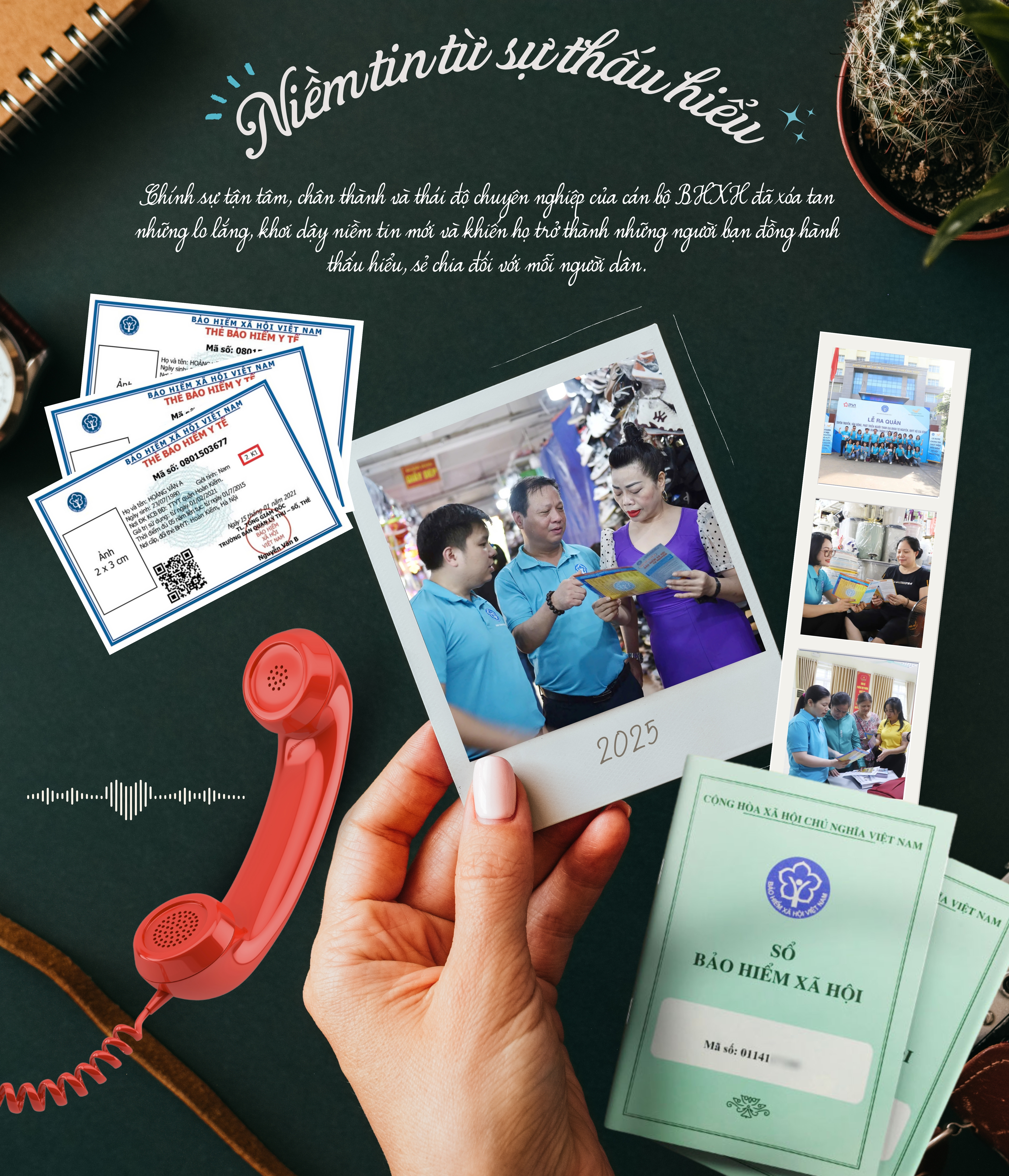 Chính sự trách nhiệm cùng tình cảm chân thành của cán bộ BHXH đã khiến chị thay đổi quyết định. Họ không đơn thuần là những người thi hành công vụ; trong mắt chị, họ còn hiện diện như những người bạn đồng hành tận tụy, biết lắng nghe, thấu hiểu và sẻ chia với từng hoàn cảnh.