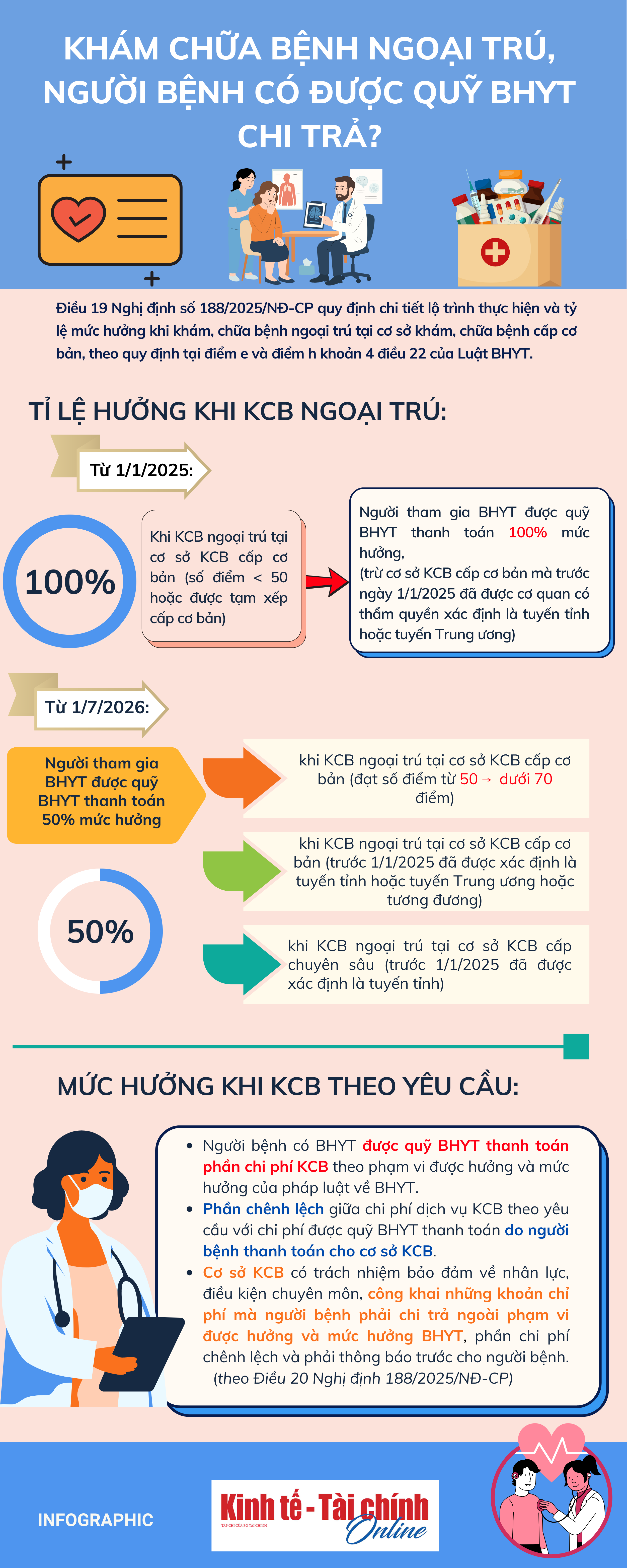 Theo Nghị định số 188/2025/NĐ-CP hướng dẫn thi hành Luật BHYT sửa đổi năm 2024 thì người bệnh khám ngoại trú cũng sẽ được hưởng tỷ lệ chi trả nhất định, theo lộ trình.