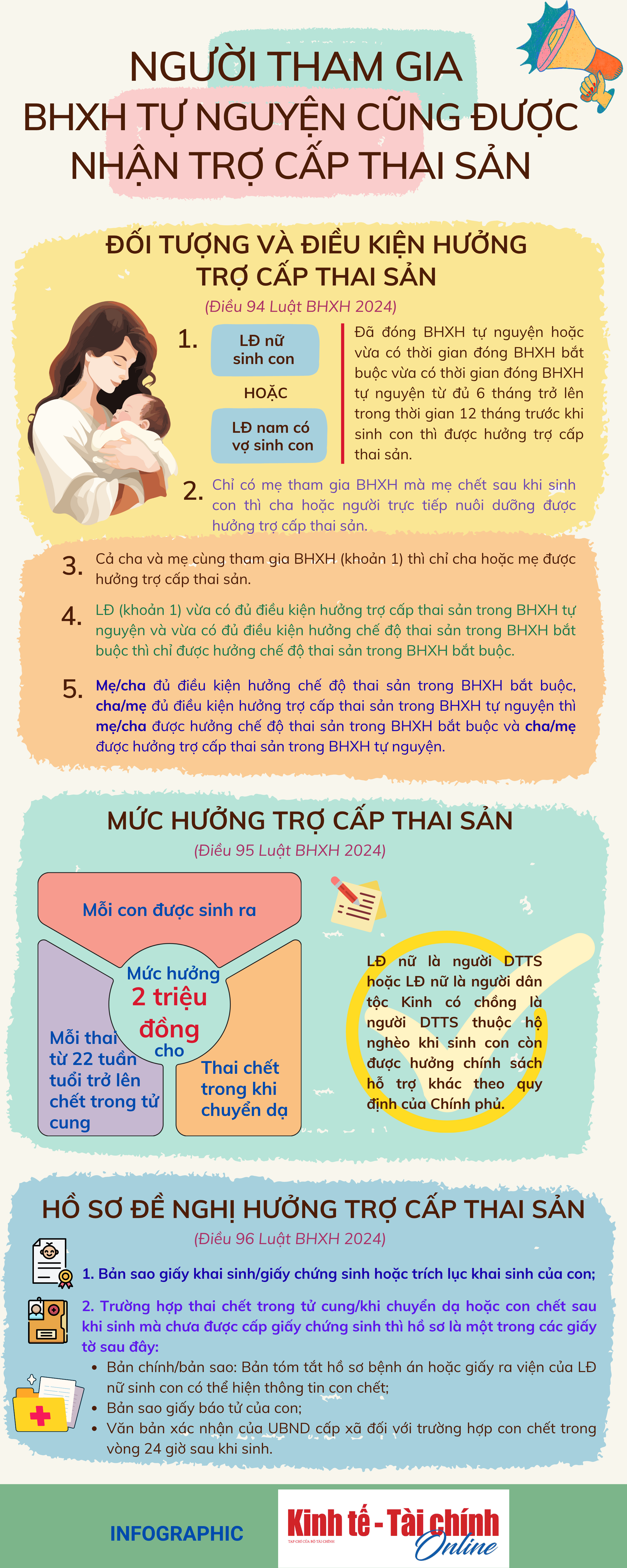 Theo Luật BHXH năm 2024, có hiệu lực từ ngày 1/7/2025, người tham gia BHXH tự nguyện được thụ hưởng thêm trợ cấp thai sản.