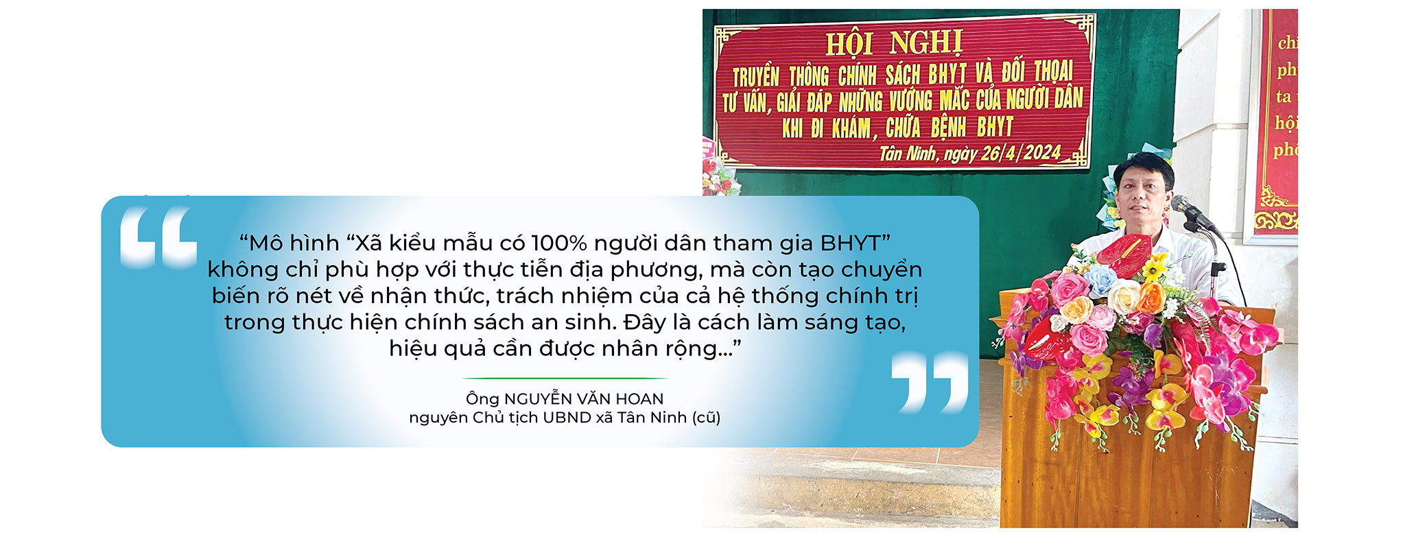 Nhờ cách làm kiên trì và đồng bộ, đến ngày 20/6/2024, cả 5/5 thôn của xã Tân Ninh đã đạt mục tiêu 100% người dân tham gia BHYT, về đích sớm hơn 10 ngày so với kế hoạch. Điều đáng quý là, bà con thuộc diện tự đóng đã tự giác tham gia BHYT bằng tiền của gia đình, chứ không nhận bất kỳ sự hỗ trợ nào. Đây không chỉ là thành công về con số, mà còn là minh chứng sống động cho việc nâng cao nhận thức, ý thức trách nhiệm của người dân đối với chính sách an sinh.