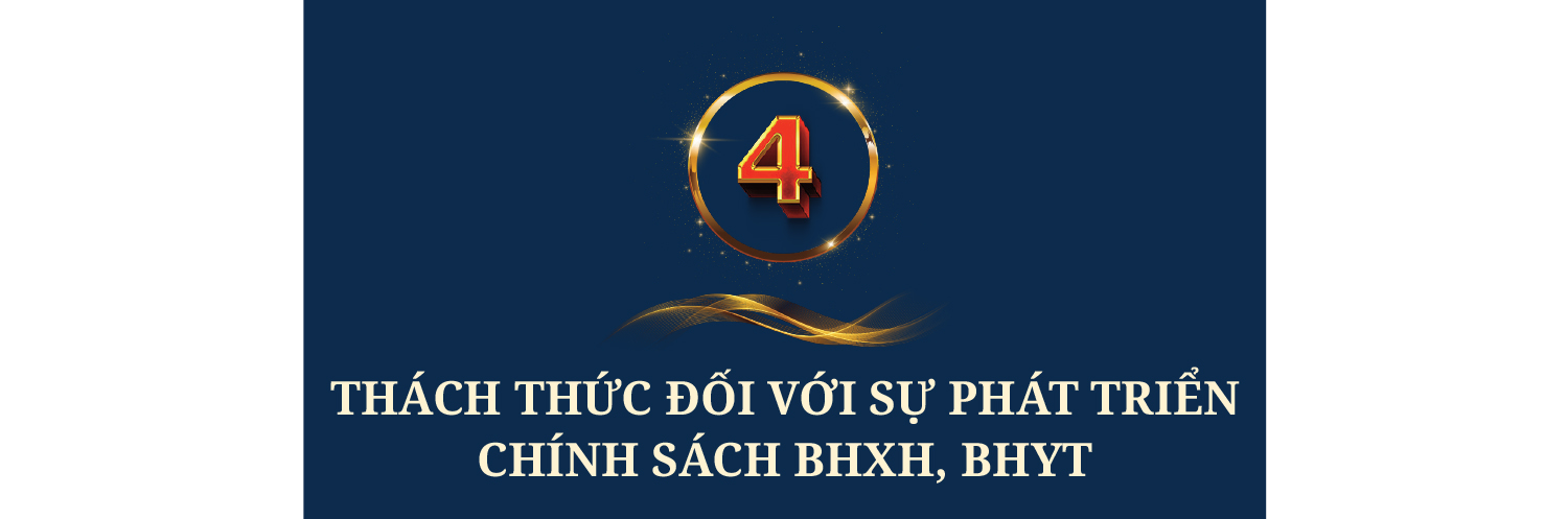 (4) Thách thức trong việc đảm bảo đạt được các mục tiêu về mở rộng diện bao phủ chính sách BHXH, BHYT. Việc đảm bảo đạt được mục tiêu đến năm 2030 có 60% lực lượng lao động trong độ tuổi tham gia BHXH và việc mở rộng diện bao phủ BHYT đối với các nhóm yếu thế vốn phụ thuộc chính vào sự hỗ trợ từ NSNN, trong khi nguồn lực NSNN còn hạn chế là những thách thức rất lớn đối với cơ quan quản lý nhà nước và cơ quan thực hiện chính sách BHXH, BHYT.