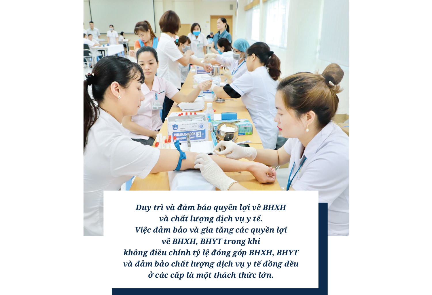 (2) Duy trì và đảm bảo quyền lợi về BHXH và chất lượng dịch vụ y tế. Việc đảm bảo và gia tăng các quyền lợi về BHXH, BHYT trong khi không điều chỉnh tỷ lệ đóng góp BHXH, BHYT và đảm bảo chất lượng dịch vụ y tế đồng đều ở các cấp là một thách thức lớn.