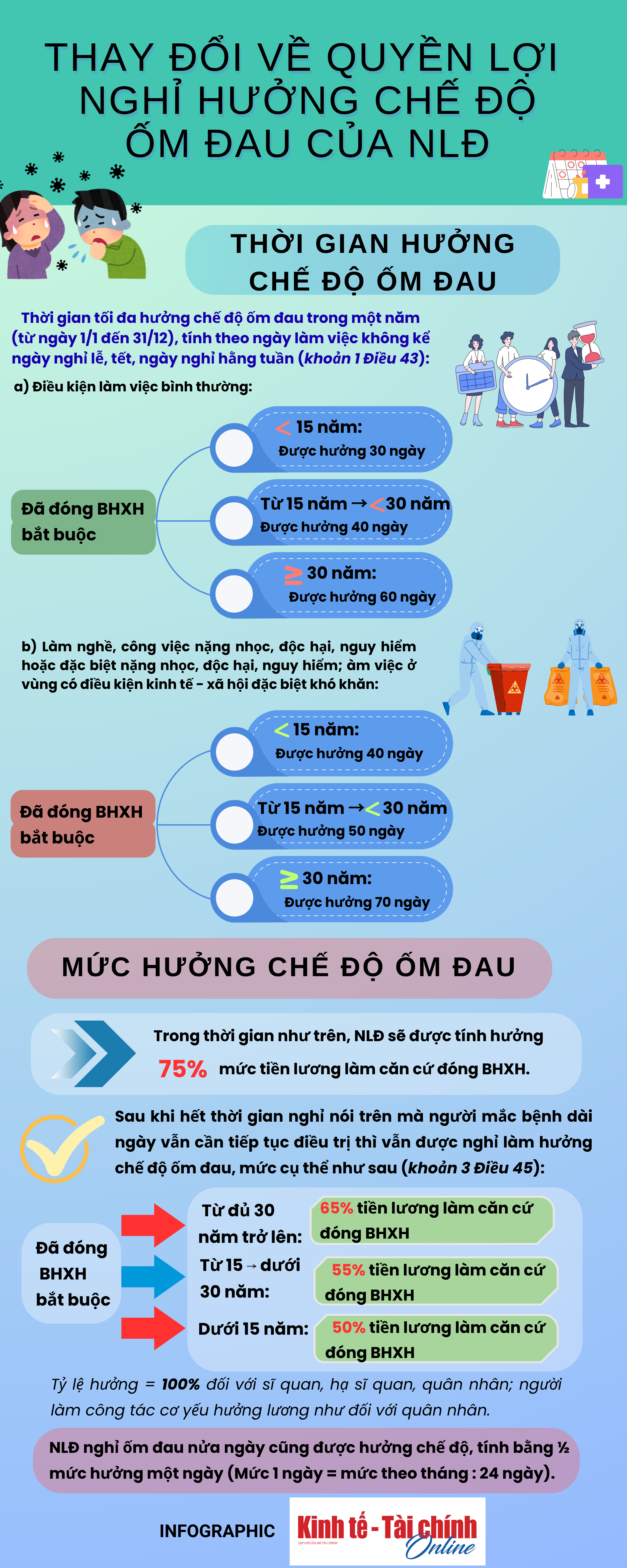 Thay đổi về quyền lợi nghỉ hưởng chế độ ốm đau của NLĐ từ ngày 1/7/2025