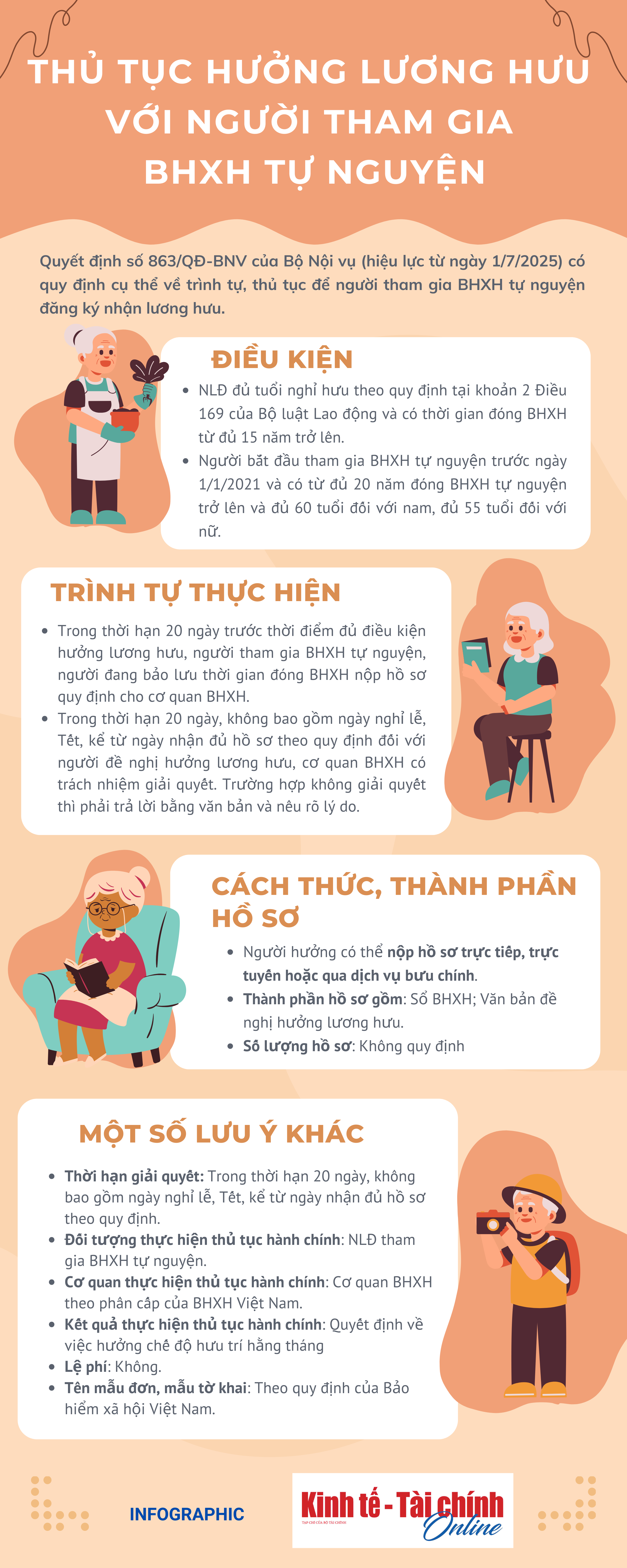 Quyết định số 863/QĐ-BNV hướng dẫn cụ thể trình tự, cách thức thực hiện các thủ tục để nhận lương hưu với người tham gia BHXH tự nguyện đủ điều kiện hưởng.