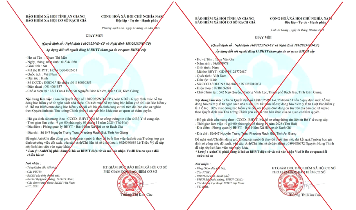 Theo đại diện BHXH tỉnh An Giang, thời gian gần đây, BHXH tỉnh An Giang đã ghi nhận nhiều vụ việc các đối tượng lợi dụng hình thức giả mạo văn bản, giấy mời, con dấu và chữ ký của lãnh đạo cơ quan BHXH để thực hiện hành vi lừa đảo, chiếm đoạt thông tin cá nhân và tài sản của người dân.